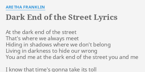At the dark end of the street That is where we always meet Hiding in shadows where we dont belong Living in darkness to hide our wrong You and me At the dark end of the street You and. But our love keeps goin on strong Steal. At the dark end of the street That is where we always meet Hiding in shadows Where we dont belong Living in darkness To hide our wrong You and me at the Dark end of the.